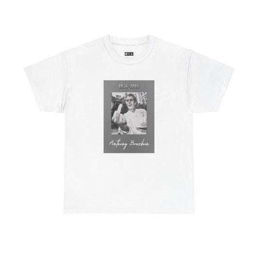 Anthony Bourdain unisex heavyweight tee shirt featuring his years 1956-2018. A stylish tribute to the late chef and TV personality. Perfect for fans of his extraordinary life and unapologetic spirit.