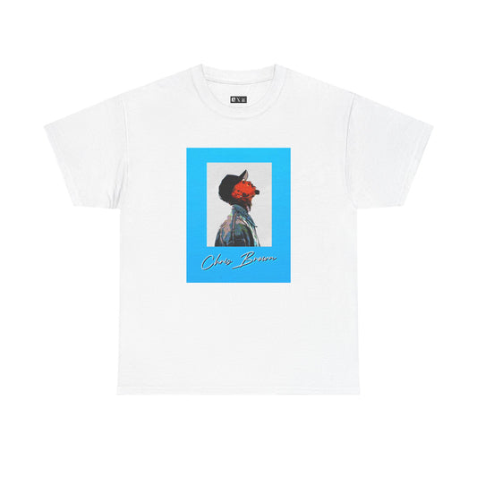 Chris Brown unisex heavyweight tee shirt. Turn heads with a striking side-profile portrait framed in electric blue. A fusion of art and music, this shirt radiates star power, street style, and undeniable confidence.
