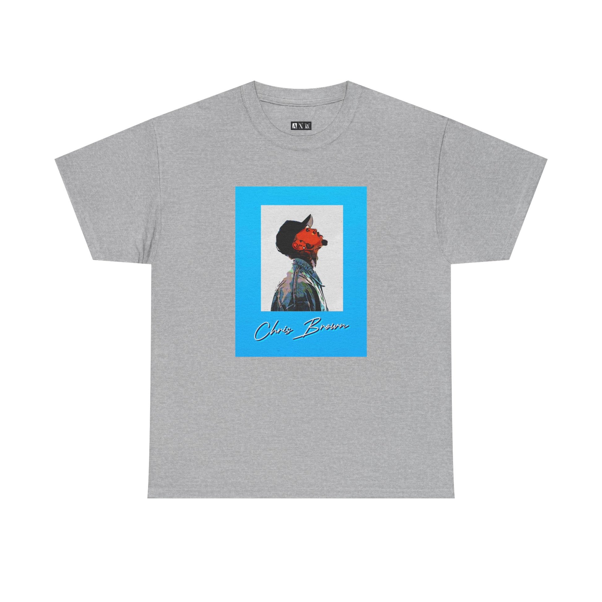 Chris Brown unisex heavyweight tee shirt. Turn heads with a striking side-profile portrait framed in electric blue. A fusion of art and music, this shirt radiates star power, street style, and undeniable confidence.