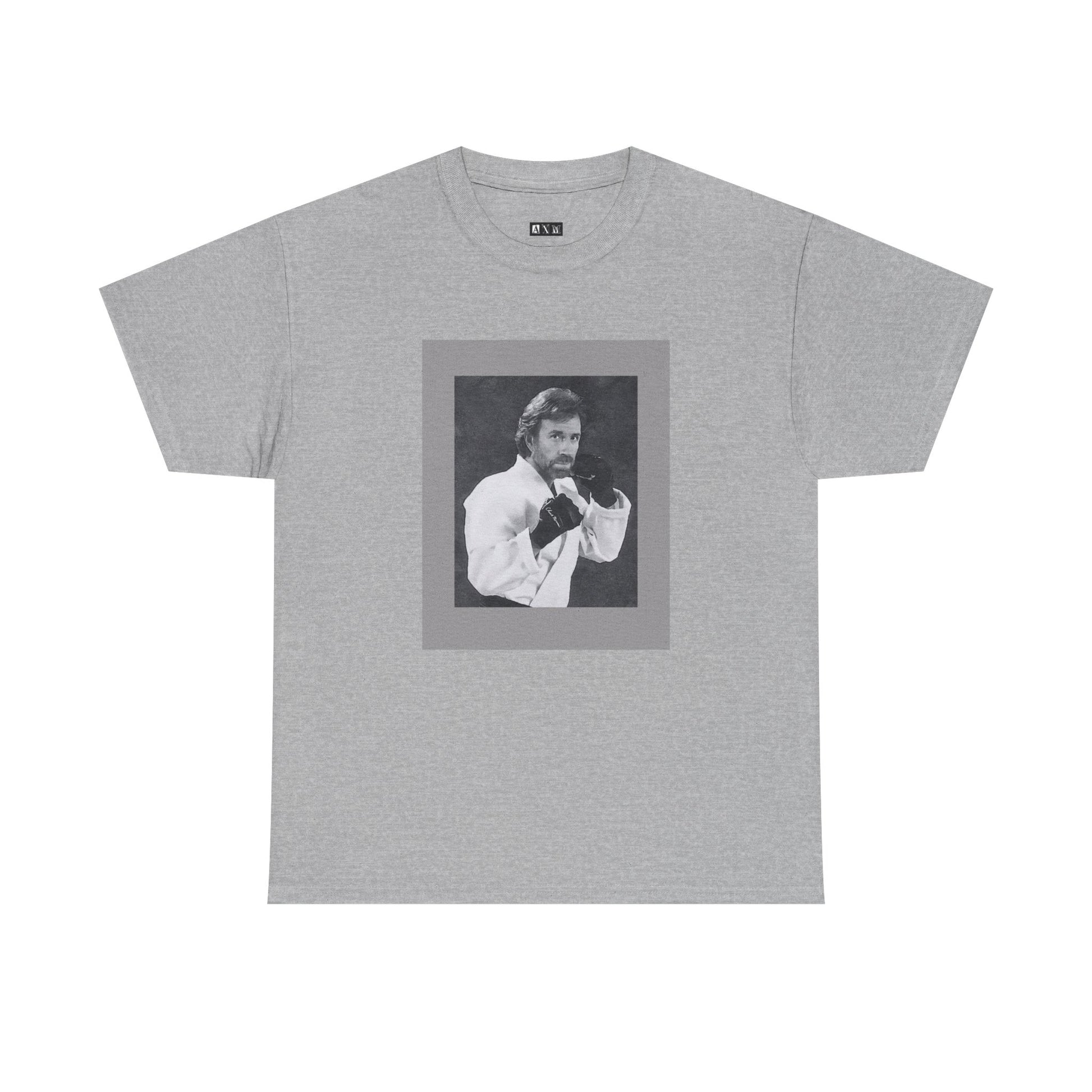 Chuck Norris unisex heavyweight tee shirt featuring a fierce fighting stance, frozen in black-and-white glory. A tribute to raw strength and unshakable legend, it’s more than a shirt—it’s a statement of fearless dominance.