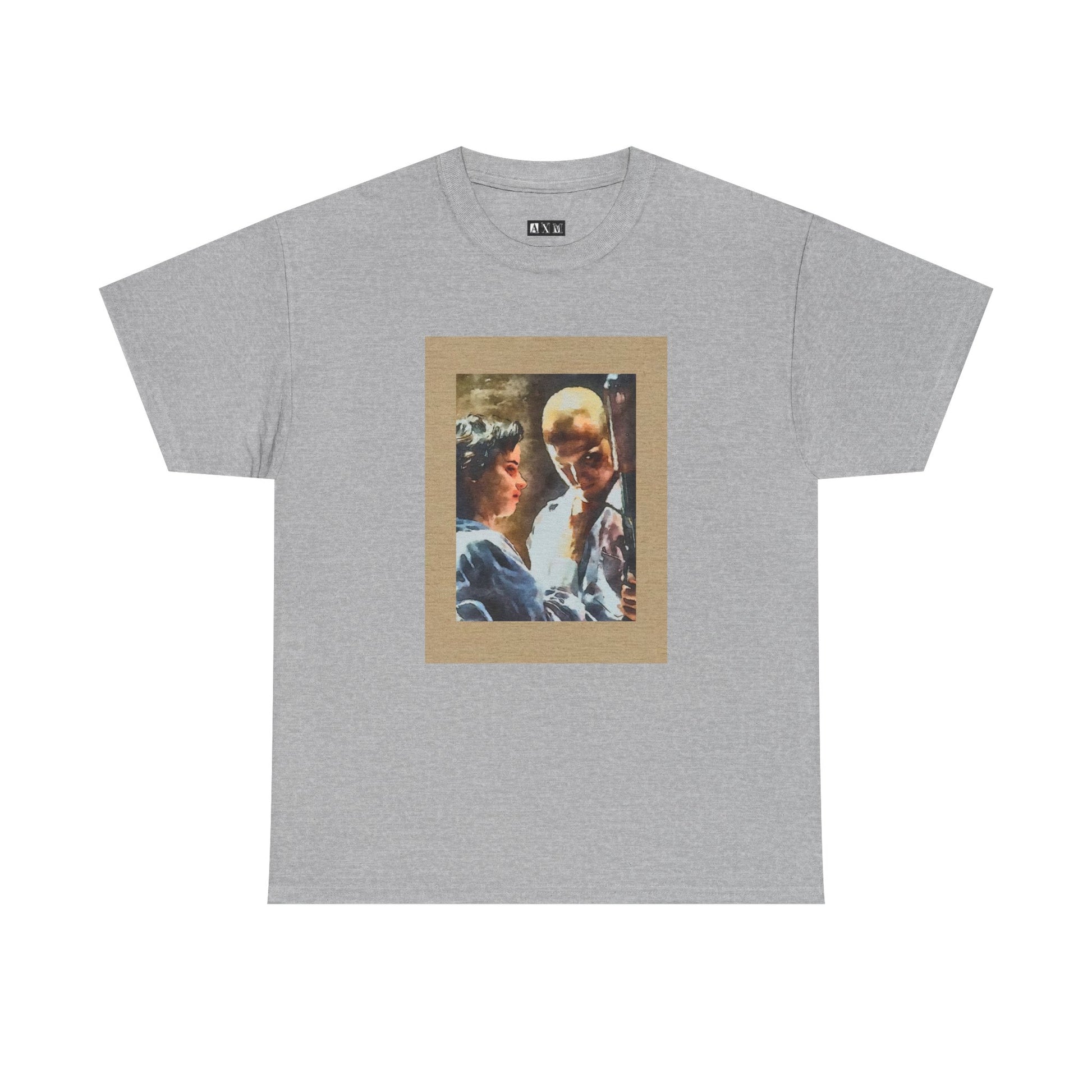 Woody Harrelson and Juliet Lewis black unisex heavyweight tee shirt featuring “Mickey & Mallory” from “Natural Born Killers .” A haunting ode to rebellion, love, and chaos—wear the drama, embody the mayhem.
